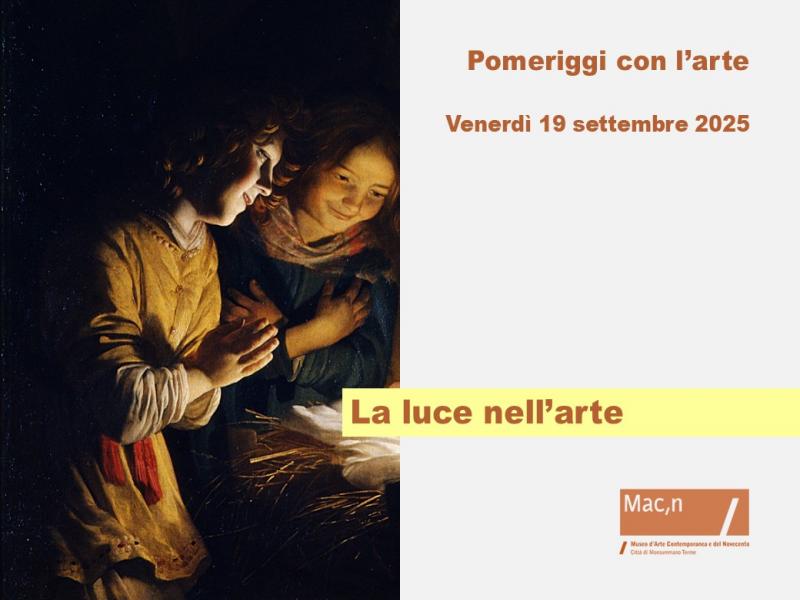 Venerdì 19 alle ore 17.00 nuovo appuntamento con i Pomeriggi con l'arte. La luce nell'arte il titolo dell'incontro, a cura di Silvia Di Paolo.