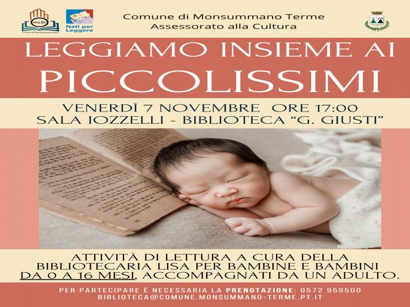 Venerdì 7 novembre 2025, alle ore 17, nella Sala Iozzelli della Biblioteca "Giuseppe Giusti" di Monsummano Terme si terranno attività di lettura dal titolo "LEGGIAMO INSIEME AI PICCOLISSIMI", a cura della bibliotecaria Lisa.